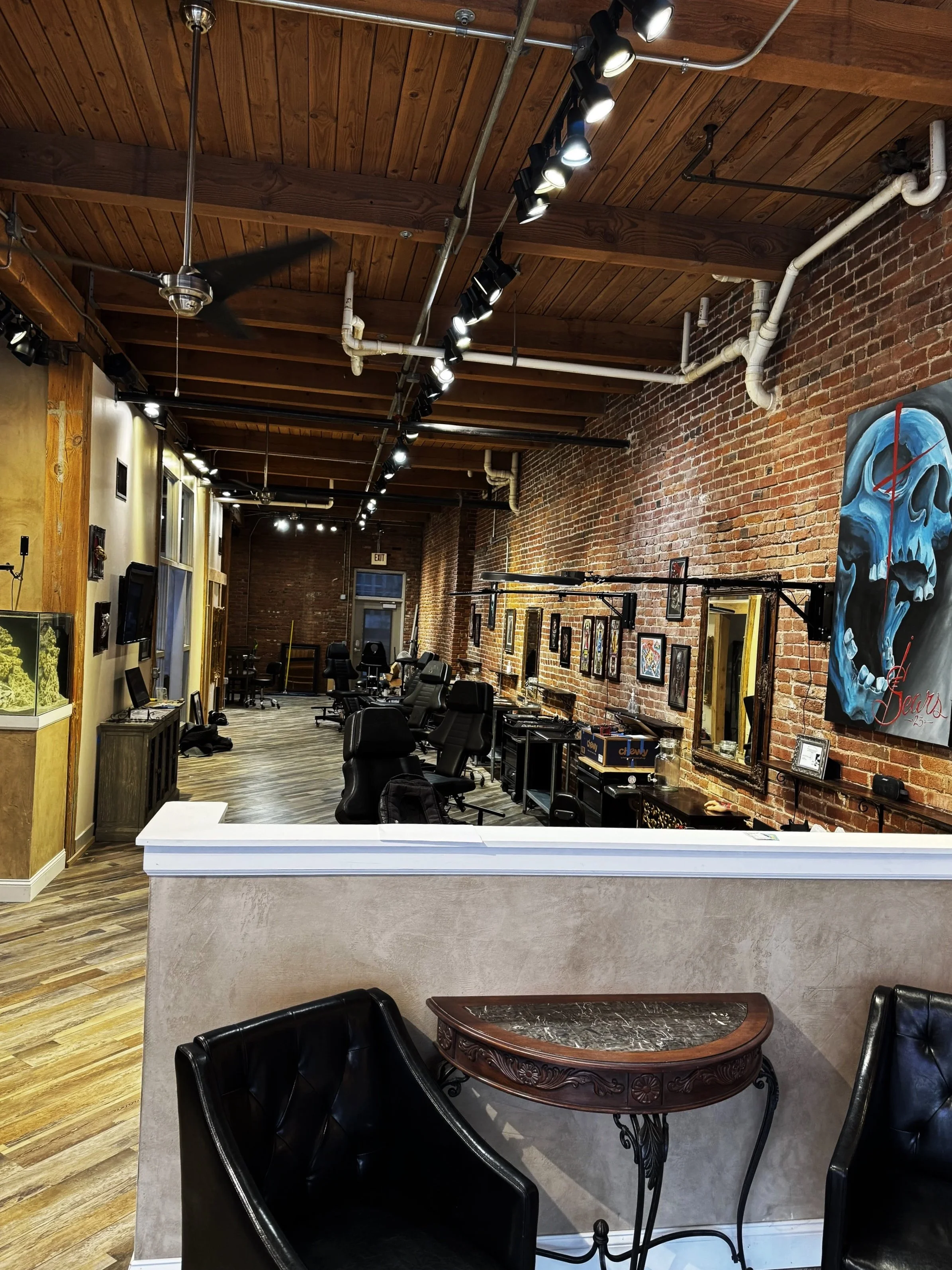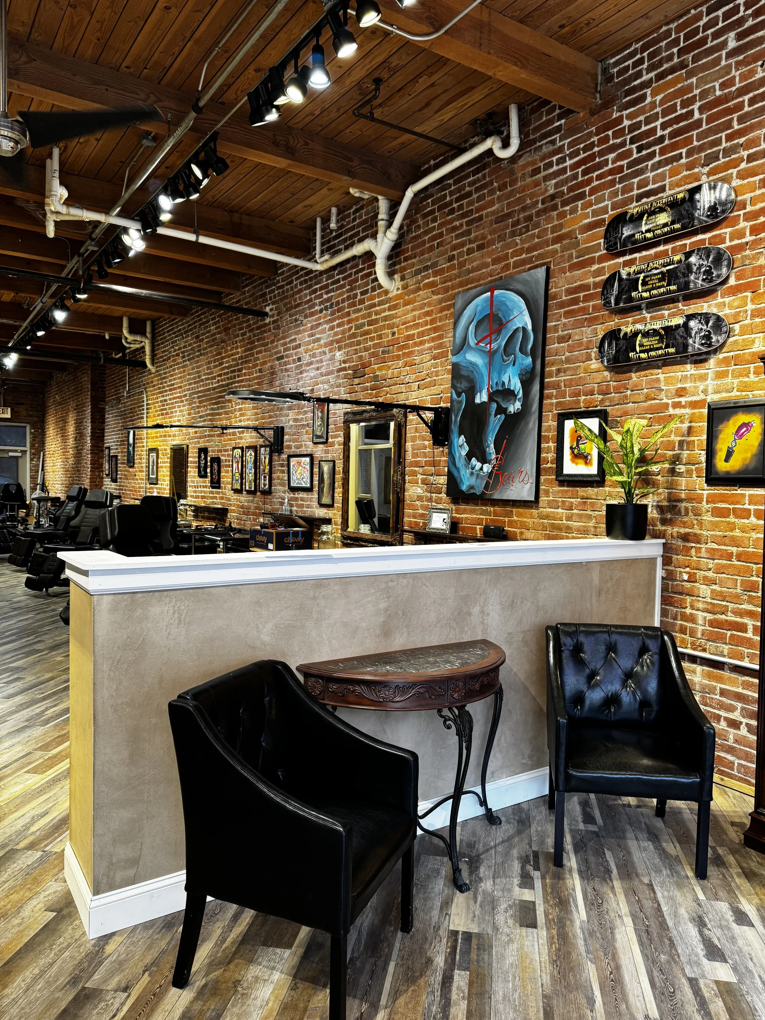 Our skilled tattoo artists specialize in diverse styles including but not limited to traditional, realism, abstract, fine line, and custom designs. From your first tattoo to your next masterpiece, we create art that tells your story.
